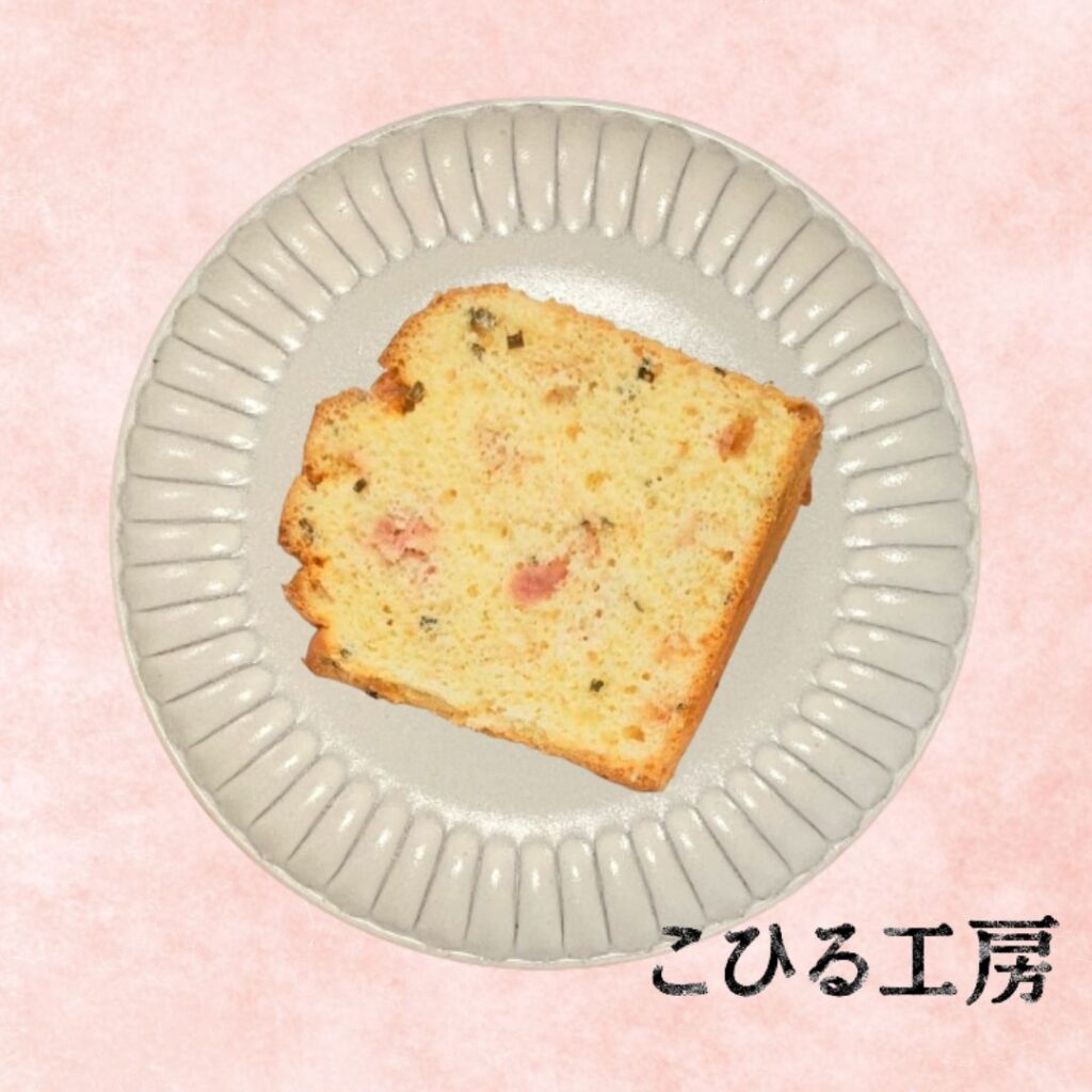 4月は桜の塩漬けを混ぜ込んだ米粉シフォンです。